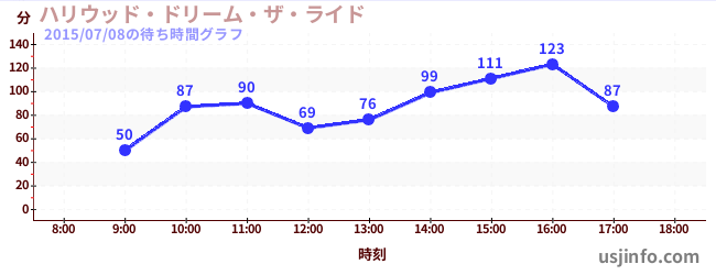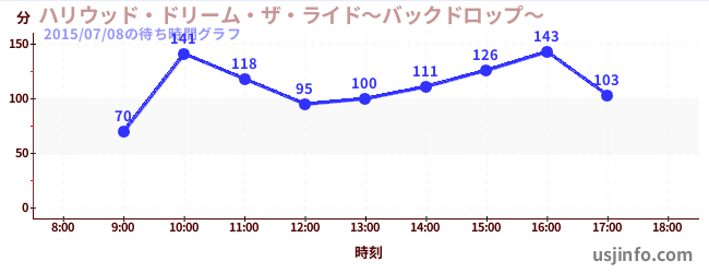 • ハリウッド・ドリーム・ザ・ライド〜バックドロップ〜$B$N(B2015年07月08日の待ち時間