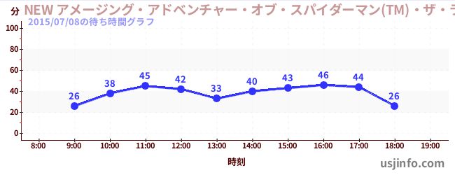 • NEW アメージング・アドベンチャー・オブ・スパイダーマン(TM)・ザ・ライド 4K3D$B$N(B2015年07月08日の待ち時間