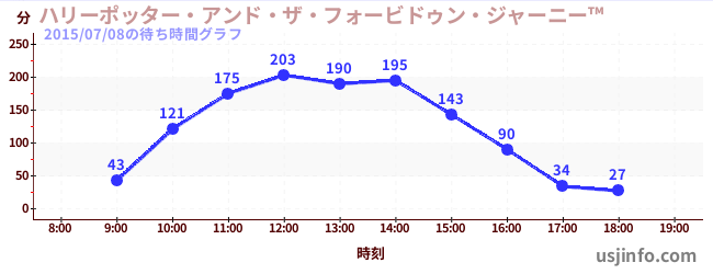 • ハリーポッター・アンド・ザ・フォービドゥン・ジャーニー™$B$N(B2015年07月08日の待ち時間
