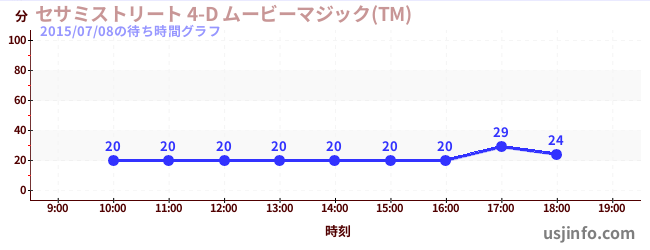 • セサミストリート 4-D ムービーマジック(TM)$B$N(B2015年07月08日の待ち時間