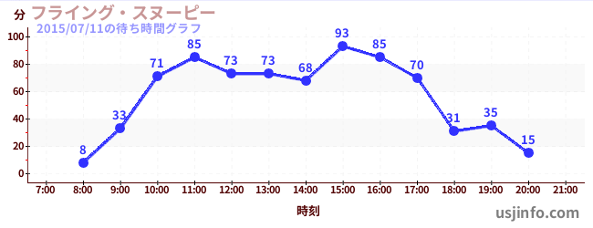• フライング・スヌーピー$B$N(B2015年07月11日の待ち時間
