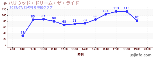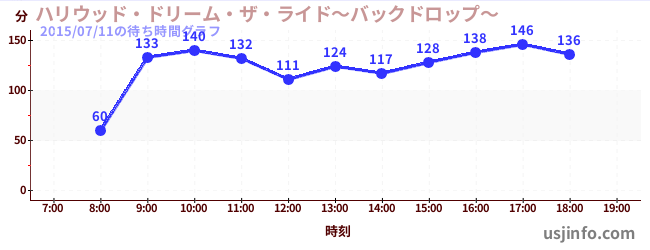 • ハリウッド・ドリーム・ザ・ライド〜バックドロップ〜$B$N(B2015年07月11日の待ち時間