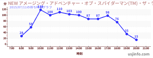 • NEW アメージング・アドベンチャー・オブ・スパイダーマン(TM)・ザ・ライド 4K3D$B$N(B2015年07月11日の待ち時間