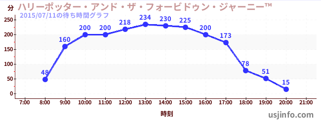 • ハリーポッター・アンド・ザ・フォービドゥン・ジャーニー™$B$N(B2015年07月11日の待ち時間