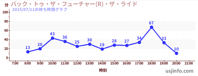 • バック・トゥ・ザ・フューチャー(R)・ザ・ライド$B$N(B2015年07月11日の待ち時間