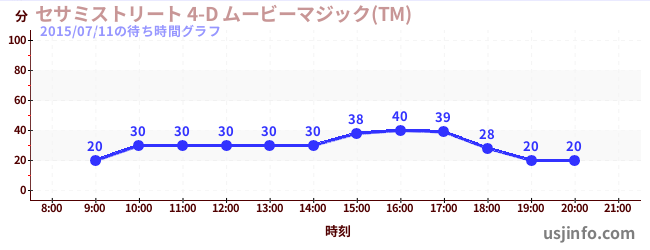 • セサミストリート 4-D ムービーマジック(TM)$B$N(B2015年07月11日の待ち時間