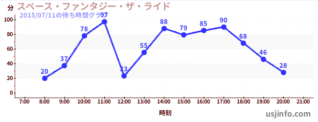 • スペース・ファンタジー・ザ・ライド$B$N(B2015年07月11日の待ち時間