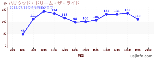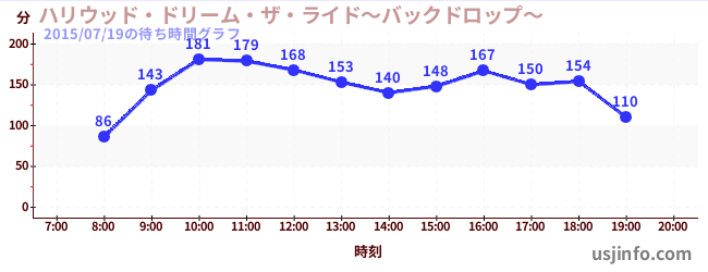 • ハリウッド・ドリーム・ザ・ライド〜バックドロップ〜$B$N(B2015年07月19日の待ち時間