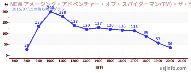 • NEW アメージング・アドベンチャー・オブ・スパイダーマン(TM)・ザ・ライド 4K3D$B$N(B2015年07月19日の待ち時間