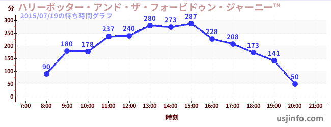 • ハリーポッター・アンド・ザ・フォービドゥン・ジャーニー™$B$N(B2015年07月19日の待ち時間
