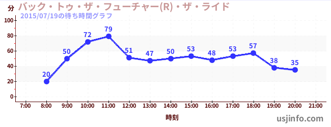• バック・トゥ・ザ・フューチャー(R)・ザ・ライド$B$N(B2015年07月19日の待ち時間