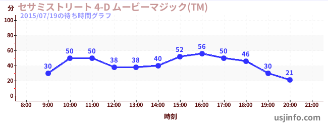 • セサミストリート 4-D ムービーマジック(TM)$B$N(B2015年07月19日の待ち時間
