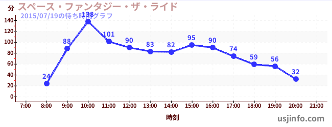 • スペース・ファンタジー・ザ・ライド$B$N(B2015年07月19日の待ち時間