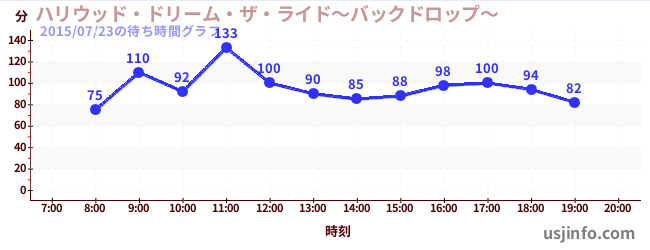 • ハリウッド・ドリーム・ザ・ライド〜バックドロップ〜$B$N(B2015年07月23日の待ち時間