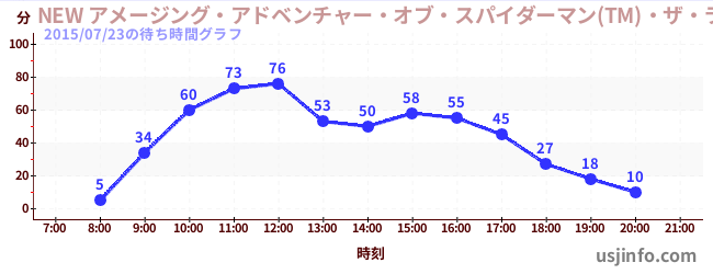 • NEW アメージング・アドベンチャー・オブ・スパイダーマン(TM)・ザ・ライド 4K3D$B$N(B2015年07月23日の待ち時間