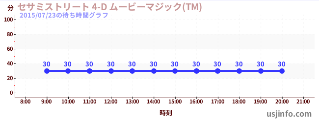 • セサミストリート 4-D ムービーマジック(TM)$B$N(B2015年07月23日の待ち時間