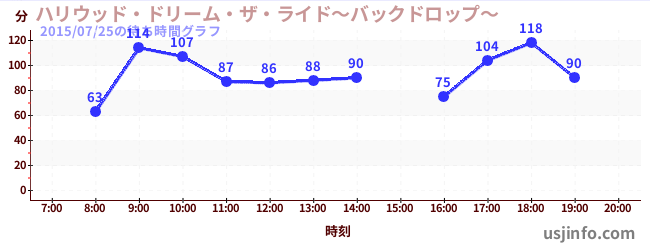 • ハリウッド・ドリーム・ザ・ライド〜バックドロップ〜$B$N(B2015年07月25日の待ち時間