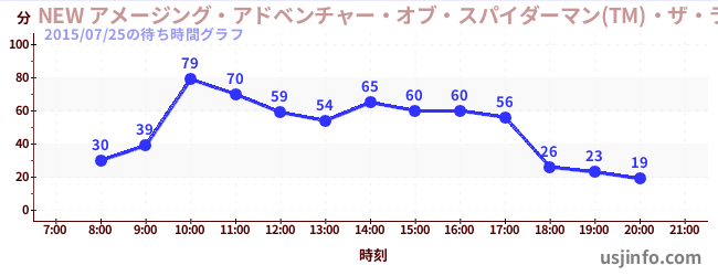 • NEW アメージング・アドベンチャー・オブ・スパイダーマン(TM)・ザ・ライド 4K3D$B$N(B2015年07月25日の待ち時間