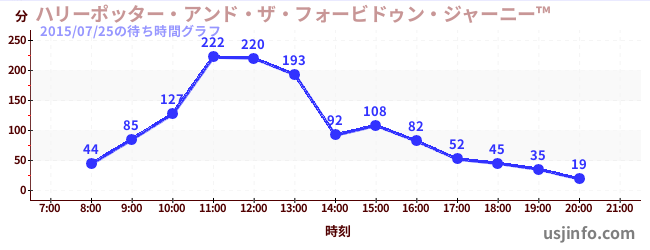 • ハリーポッター・アンド・ザ・フォービドゥン・ジャーニー™$B$N(B2015年07月25日の待ち時間