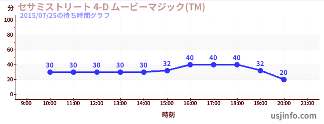 • セサミストリート 4-D ムービーマジック(TM)$B$N(B2015年07月25日の待ち時間