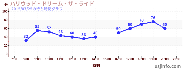 • ハリウッド・ドリーム・ザ・ライド$B$N(B2015年07月25日の待ち時間
