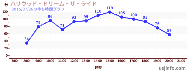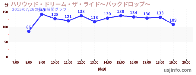 • ハリウッド・ドリーム・ザ・ライド〜バックドロップ〜$B$N(B2015年07月26日の待ち時間