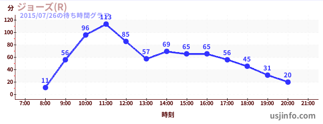 • ジョーズ(R)$B$N(B2015年07月26日の待ち時間