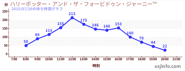 • ハリーポッター・アンド・ザ・フォービドゥン・ジャーニー™$B$N(B2015年07月26日の待ち時間