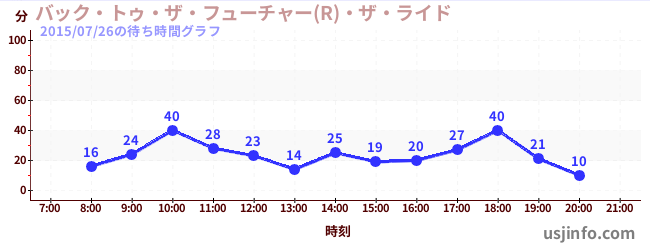 • バック・トゥ・ザ・フューチャー(R)・ザ・ライド$B$N(B2015年07月26日の待ち時間