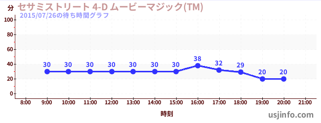 • セサミストリート 4-D ムービーマジック(TM)$B$N(B2015年07月26日の待ち時間