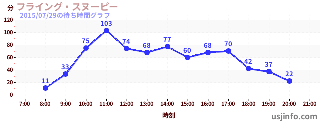 • フライング・スヌーピー$B$N(B2015年07月29日の待ち時間