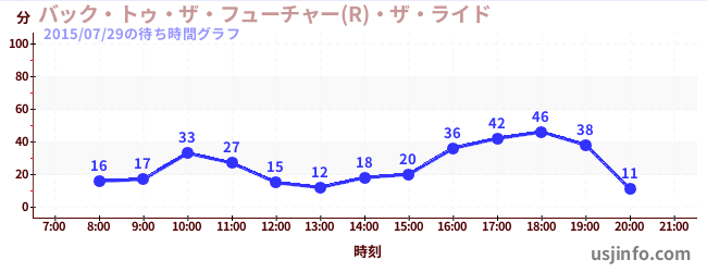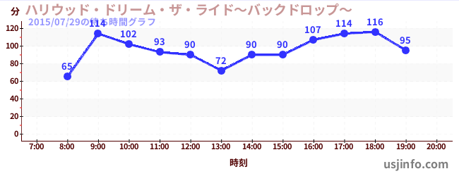 • ハリウッド・ドリーム・ザ・ライド〜バックドロップ〜$B$N(B2015年07月29日の待ち時間