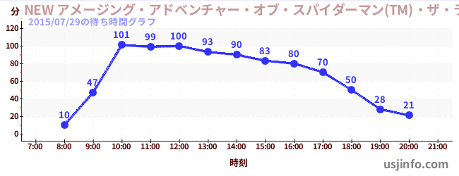 • NEW アメージング・アドベンチャー・オブ・スパイダーマン(TM)・ザ・ライド 4K3D$B$N(B2015年07月29日の待ち時間