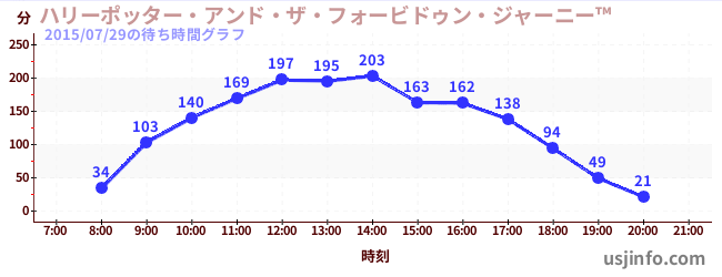 • ハリーポッター・アンド・ザ・フォービドゥン・ジャーニー™$B$N(B2015年07月29日の待ち時間