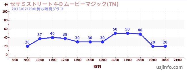 • セサミストリート 4-D ムービーマジック(TM)$B$N(B2015年07月29日の待ち時間
