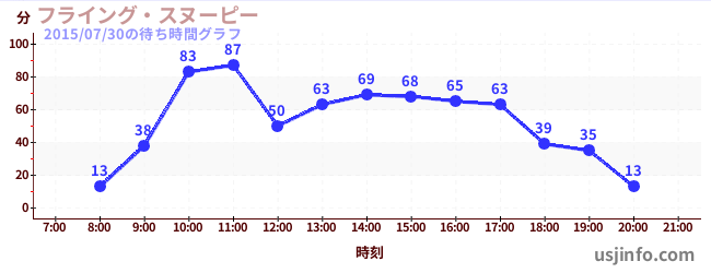 • フライング・スヌーピー$B$N(B2015年07月30日の待ち時間