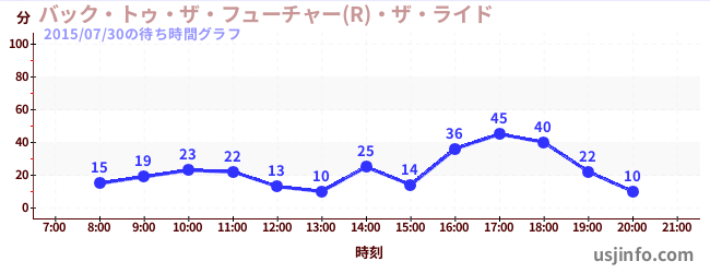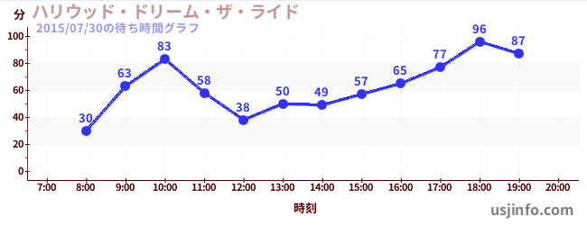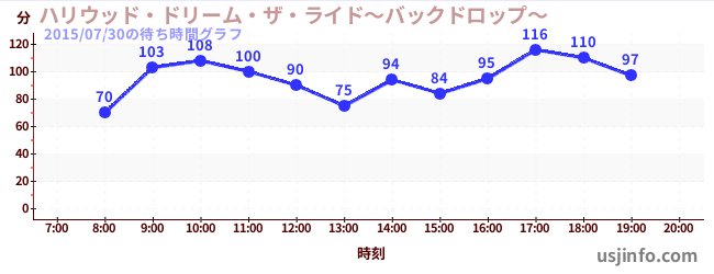 • ハリウッド・ドリーム・ザ・ライド〜バックドロップ〜$B$N(B2015年07月30日の待ち時間