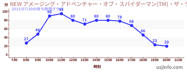 • NEW アメージング・アドベンチャー・オブ・スパイダーマン(TM)・ザ・ライド 4K3D$B$N(B2015年07月30日の待ち時間