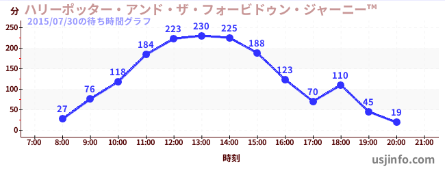 • ハリーポッター・アンド・ザ・フォービドゥン・ジャーニー™$B$N(B2015年07月30日の待ち時間