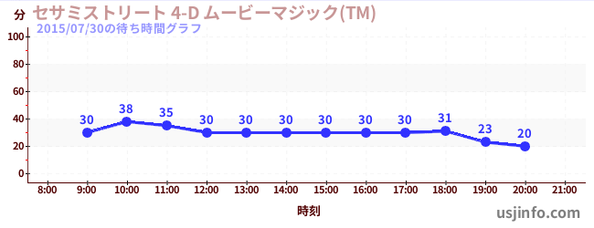 • セサミストリート 4-D ムービーマジック(TM)$B$N(B2015年07月30日の待ち時間
