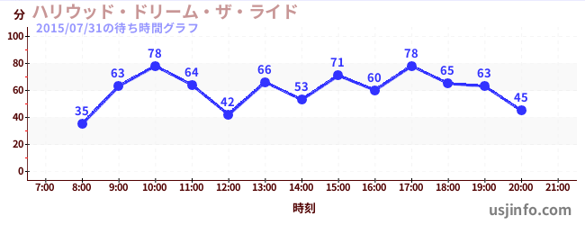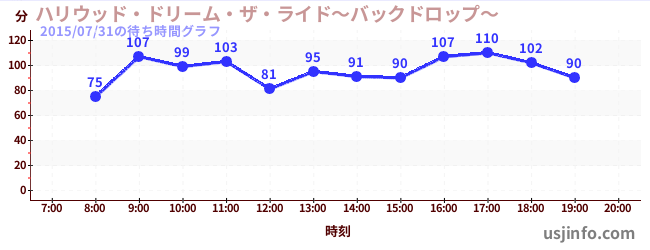 • ハリウッド・ドリーム・ザ・ライド〜バックドロップ〜$B$N(B2015年07月31日の待ち時間