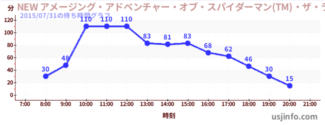 • NEW アメージング・アドベンチャー・オブ・スパイダーマン(TM)・ザ・ライド 4K3D$B$N(B2015年07月31日の待ち時間