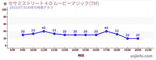 • セサミストリート 4-D ムービーマジック(TM)$B$N(B2015年07月31日の待ち時間