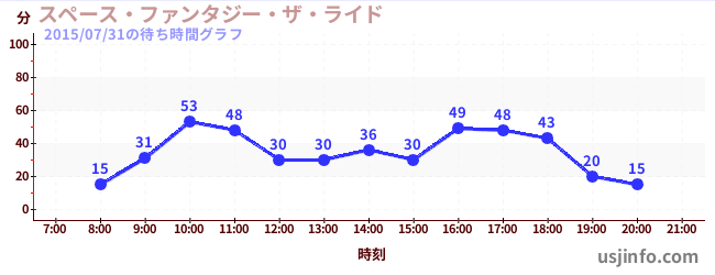 • スペース・ファンタジー・ザ・ライド$B$N(B2015年07月31日の待ち時間
