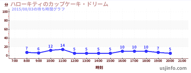 • ハローキティのカップケーキ・ドリーム$B$N(B2015年08月03日の待ち時間