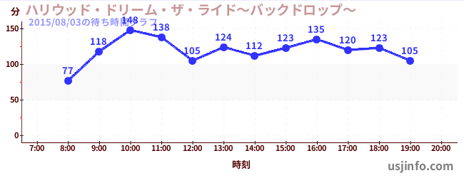 • ハリウッド・ドリーム・ザ・ライド〜バックドロップ〜$B$N(B2015年08月03日の待ち時間