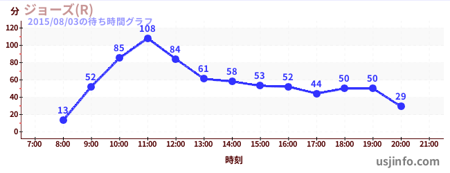 • ジョーズ(R)$B$N(B2015年08月03日の待ち時間