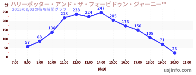 • ハリーポッター・アンド・ザ・フォービドゥン・ジャーニー™$B$N(B2015年08月03日の待ち時間