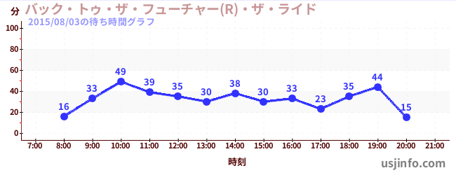 • バック・トゥ・ザ・フューチャー(R)・ザ・ライド$B$N(B2015年08月03日の待ち時間