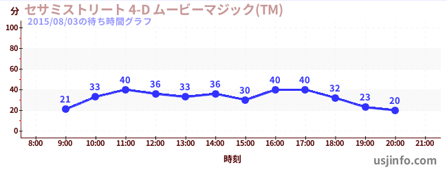 • セサミストリート 4-D ムービーマジック(TM)$B$N(B2015年08月03日の待ち時間